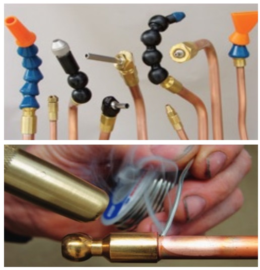 Mit den Adaptern wird jede Kühlmitteldüse innerhalb von Sekunden perfekter einstellbar. Einfach Ihre vorhandene Kühlmitteldüse/ Ihren Kühlmittelschlauch Loc Line auf/ einschrauben, ausrichten, testen und gegebenenfalls anpassen – fertig.