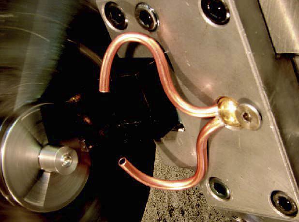 Zur Unterstützung beim Einstellen des Kühlmittelstrahls kann das Kupferrohr in die gewünschte Position gebogen werden.