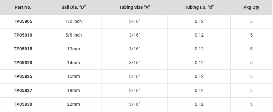 Erhältlich in Kugel-Durchmesser: 10-11-12-14-15-16-18-22 mm-1/2"-5/8"
